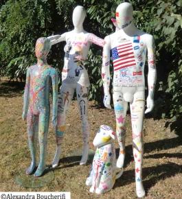 En 2008, j’avais suivi l’élection présidentielle américaine avec intérêt. A l’époque, j’ai travaillé sur la façon dont Barack Hussein Obama, alors sénateur, inspirait l’art et la mode, deux ans avant de penser l’exposition sur Lady Gaga. Une vidéo de ce projet obamesque a été diffusé en galerie et notamment chez Dorothy, la plus américaine des galeristes à Paris. En 2012, j’ai naturellement proposé une famille peinte par mes soins sur des mannequins Ralph Pucci que j’ai “shoppé” chez Cofrad Mannequins à Paris. Je désirais travailler sur un format inhabituel, avec le challenge de passer de la 2D à la 3D. J’ai dessiné envers et « avec » les courbes. J’avais à l’esprit le contraste entre un certain réalisme par les mannequins taille réelle et la représentation imagée de ce que peut être la famille américaine.