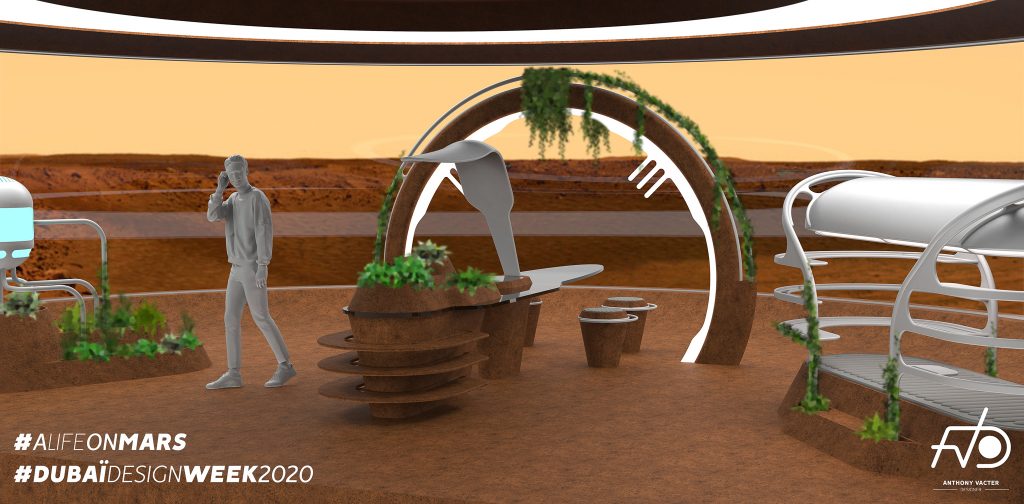 Diplômé depuis 2019 de l’École supérieure d’art et de design (ESAD) de Saint-Étienne, Anthony Vacter est un designer et auto-entrepreneur travaillant sur la thématique de la vie sur Mars. Il a notamment exposé à la Dubaï Design Week en 2020 avec “Une vie sur Mars”.