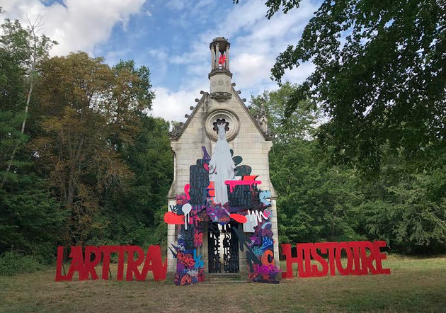 ARDPG – Arnaud Puig a investi la chapelle du parc du Château de Pressigny-les-Pins. Un défi de taille, la chapelle ayant été classée aux monuments nationaux : l’artiste a du concevoir une structure de plus de 13m de haut afin de l’habiller au maximum.
