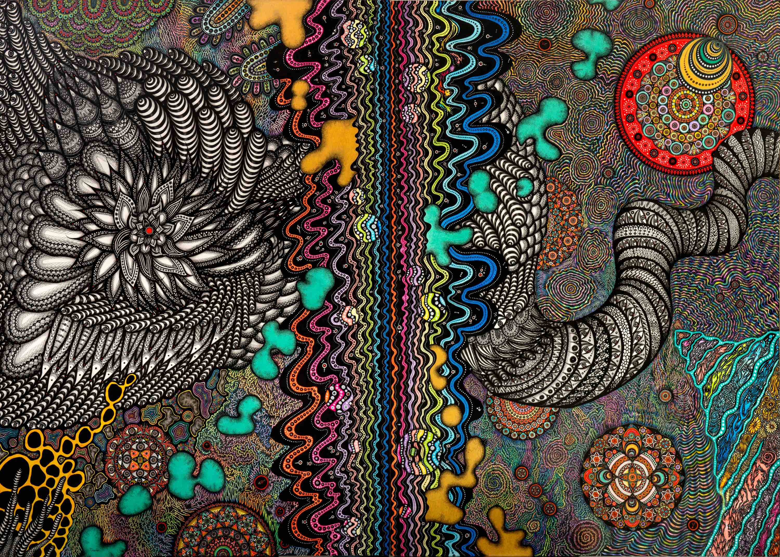 Et pour enchaîner par un autre geste inspiré qui insuffle la vie, quant à lui, Claire Finotti (page facebook ici) travaille à partir de modèles en mouvement, nus essentiellement. Dans ses dessins (encre et fusain), le corps est roi. Nourrie par la nécessité de l’urgence, l’artiste développe une rapidité dans son exécution. Mélangeant les encres, acryliques, craies, pastels ou crayon, elle offre une bien belle palette de sensations. D’un trait vif, rehaussé de couleurs, elle capte une fulgurance, saisit une émotion qu’elle nous transmet d’emblée, d’un geste assuré. D’une main de maître.
