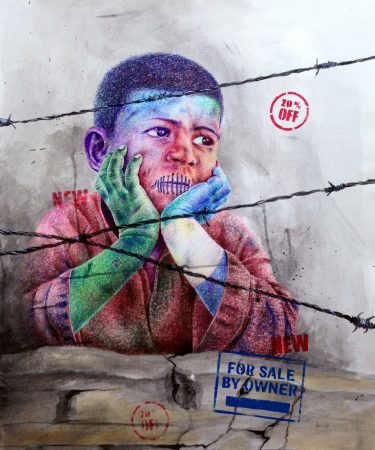Je n’expose pas mes dessins mais j’expose le spectateur face à mes dessins. Je plonge le spectateur dans ces dessins, dans une sorte d’empathie, les invitant à se mettre à la place des enfants représentés. À travers ces différents portraits, j’évoque un réel humanisme chez l’être humain, en traduisant l’état d’esprit de ces jeunes dont les rêves ont été violés et étouffés.