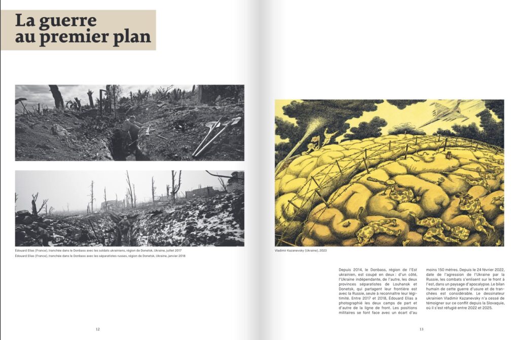 Le photojournalisme et le dessin de presse sont des langages singuliers, dont le dialogue offre des échos visuels et des regards convergents. La soixantaine de duos est accompagnée d’un texte de Pierre Haski, spécialiste de la géopolitique et président de Reporters sans frontières, et d’un entretien entre Kak, dessinateur de presse et président de Cartooning for Peace, et Guillaume Herbaut, photojournaliste multi-récompensé. Par ce croisement, cet ouvrage propose une diversité de points de vue sur les enjeux des conflits internationaux, l’instabilité de la démocratie, la remise en cause des droits humains ou l’accélération du réchauffement climatique.