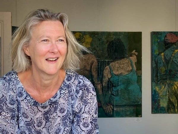 À la rentrée, j’ai eu carte blanche pour occuper trois salles de cet ancien Palais des évêques, longtemps tribunal, en voie de regrouper un ensemble muséal d’envergure d’ici 2024. J’y ai exposé plusieurs toiles de ma série « Instants de vies ». Alors que l’on fait généralement de moins en moins attention aux autres, l’artiste est captivée par les gens dans des situations courantes, voire triviales. Or, la grâce peut advenir de n’importe qui, n’importe quand, n’importe où !