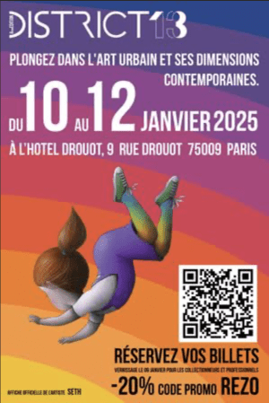 Depuis 2018, District 13 s’affirme au cœur de Paris, au sein du célèbre Hôtel Drouot, comme l’une des foires d’art contemporain les plus captivantes, ancrée dans la culture urbaine. District 13 propose à chaque édition une sélection affinée de galeries représentatives de la scène artistique street art. Cette année, la foire met en avant des talents émergents et établis, issus d’un mouvement artistique caractérisé par son esprit subversif et innovant.