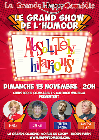 Absolutely Hilarious, Le Grand Show de L’Humour revient et s’installe cet hiver à la Grande Happy Comédie. Créé en 2018 à Paris, il est rapidement devenu LE plateau d’artistes incontournable de la capitale ! Un spectacle où se croisent personnages, stand-up, humour noir, et même magie. Tous les dimanches à 20h, la Grande Comédie accueille donc ce qui se fait de mieux en ce moment sur la scène parisienne de l’humour. Une soirée différente à chaque édition, avec toujours une nouvelle programmation.