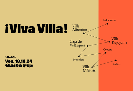 La Gaîté Lyrique et la Casa de Velázquez (Madrid, Espagne), la Villa Albertine (États-Unis), la Villa Kujoyama (Kyoto, Japon) et la Villa Médicis (Rome, Italie) – présentent la deuxième édition de ¡Viva Villa!, le rendez-vous des résidences d’artistes françaises à l’étranger. Festival pluridisciplinaire, une sélection d’artistes et de chercheur·euses issu·es des quatre résidences exposent leur travail autour d’une journée de rencontres, projections, ateliers en accès libre et d’une soirée de concerts et de performances inédits.