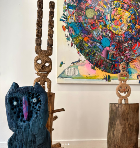 Si Bault partage ses talents de coloriste depuis une quinzaine d’années dans la rue et en galerie, il explore maintenant une nouvelle approche de la matière, en allant davantage vers la scultpure, renforçant encore son lien avec l’art brut.