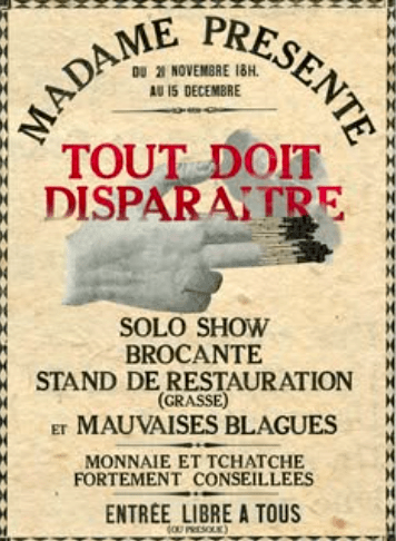 La galerie Knafo Pouyet, rue du Dragon dans le VIe, vous donne rendez-vous pour la merveilleuse exposition de l’artiste Madame ! Et gare à vous, car Tout doit disparaître !