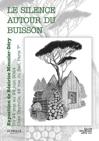 Grande gagnante de la dernière édition du Prix Deyrolle, section naturaliste du Salon des Beaux-Arts. Béatrice Meunier-Déry nous invite dans son univers au travers d’œuvres d’une finesse déroutante. Munie d’une loupe, de crayons et de feutres aux mines larges comme des aiguilles de pin, elle crée des visions quasi-chamaniques, des bouts de forêts, qui de temps en temps, entre deux épais feuillages, laisse entrevoir le passage de l’Homme.