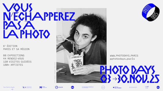 Depuis 2020, Photo Days invite à un parcours photographique unique dans Paris et sa région. Pendant un mois, musées, institutions culturelles, galeries, fondations, foires et festivals s’engagent dans Photo Days pour faire découvrir aux amateurs et aux curieux toute l’étendue de la production photographique mondiale. Au travers de ses parcours et de ses découvertes de lieux insolites, Photo Days vous entraîne d’une rive à l’autre de la Seine pour une immersion exceptionnelle.