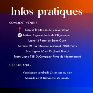 Nous vous invitons ainsi à notre exposition Ce(ux) qui nous lie(nt), au sein de la maison de la Conversation (12, rue Maurice Grimaud, 75018 Paris), les 23, 24 et 25 janvier 2026.