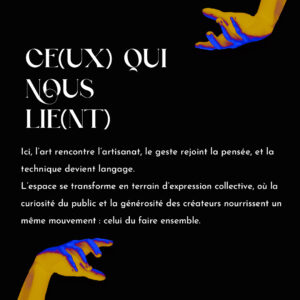 Ce(ux) qui nous lie(nt), au-delà de venir jouer avec les mots, est un véritable appel des art(isant)s, où le palpable, le réel et le concret viennent éveiller tous nos sens jusque dans nos cœurs.