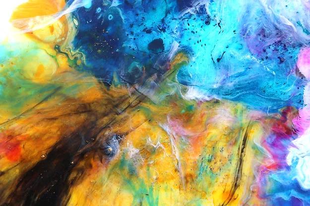 J’utilise une technique où je travaille de la résine de haute qualité, que je fais venir des États-Unis. J’y ajoute des colorant naturels ou synthétiques. La technique mixte que j’utilise est peu employée en France : elle consiste à travailler la résine à cœur, et non pas simplement la couler ; cela rend le travail assez complexe car la résine est difficile à dompter. Il faut lui donner du mouvement, une direction, alors qu’il s’agit d’un matériau qui part un peu dans tous les sens. Je travaille également par superposition de couches, ce qui donne un aspect tridimensionnel à mes créations. Parfois, j’incorpore des effets qui créent des aspérités, des reliefs sur l’œuvre. Chaque tableau est le fruit de plusieurs expériences faites en amont.