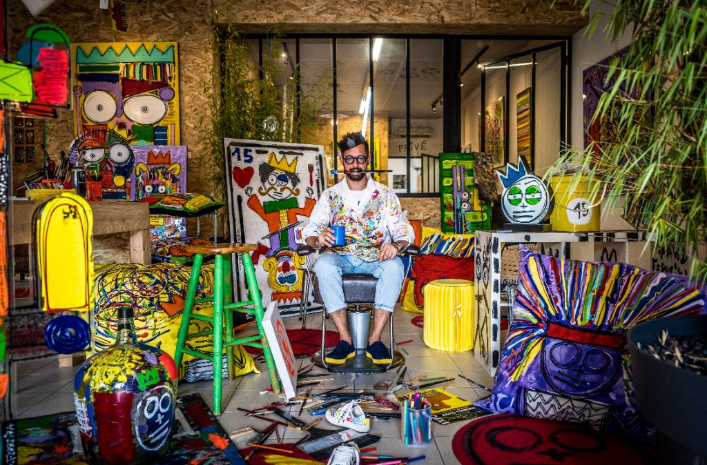 Je dessine depuis tout petit, mon père faisait de la sculpture en bois et ma mère de la peinture. Enfant, j’ai toujours fait des dessins et de la peinture. Je venais d’un milieu ouvrier, c’était compliqué de faire des études artistiques. Je suis donc parti en formation en dessin de bâtiment. À mes vingt ans, mes copains m’ont offert toute la panoplie du petit Picasso. C’est là que j’ai peint mes premières toiles. C’était juste une passion pour moi et pour mes amis. Grâce au bouche-à-oreille, un galeriste a mis l’une de mes toiles en vitrine. Il a vendu mon tableau en deux jours. J’étais géomètre en même temps, j’avais un boulot tout en pratiquant ma passion. J’ai commencé à faire des expositions, puis c’est allé assez vite, j’ai eu des propositions d’expositions à l’étranger. J’ai démissionné à 25 ans pour pouvoir faire de ma passion mon métier. Je me suis lancé dans l’aventure et depuis, ça ne s’est jamais arrêté.