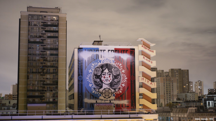 Des graffeurs anonymes font pleurer la Marianne de Shepard Fairey
