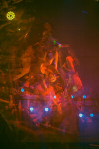 C’est une photo que j’ai prise à la release party d’Ana Diaz. J’avais fait des doubles expositions, ça veut dire que je shoot ma pellicule deux fois, mais il y a toujours des fois où ça fait des trucs fucked up mais c’est ce que j’aime justement. Cette photo en particulier, tu peux la lire de 3 façons différentes si tu la tournes, en réalité je ne sais même pas comment j’ai fait ça mais je trouve ça dingue !