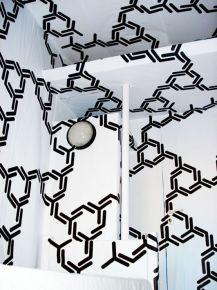 À l’époque où je taguais, j’étais partagé entre l’envie de répéter mon tag avec d’autres techniques que le marqueur, d’en faire un “logo” et l’envie de passer à un système d’affichage. Me rendant de plus en plus compte que le graffiti s’adresse principalement aux graffeurs et que les trois quarts des gens ne lisent pas les tags mais les reconnaissent (pour ceux qui suivent un peu), j’ai alors commencé à styliser mon tag un peu à la Wrung à tel point qu’il ne soit plus lisible mais identifiable. Je l’ai simplifié jusqu’à ce qu’il devienne une forme géométrique simple, l’hexagone. Enfin, j’ai voulu éclater cette forme et essayer de la combiner pour en faire un motif. Du coup, cela m’a permis de m’extraire du format (A4, A3…) et de considérer le mur comme une feuille comme quand on tague. J’ai pu me concentrer sur l’installation de mes motifs dans la rue et sur des objets en volume. Ma technique m’a permis de limiter le temps de production en atelier et de transformer ma signature en “écriture”. À noter que la technique adhésive m’a aussi ouvert la possibilité de travailler en plein jour…