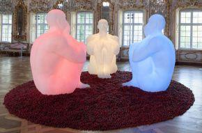 Entre ces installations, sont exposés des visages monumentaux de basalte ou de bronze créés en 2014/2015. Inspirés de visages de personnes réelles remarquées par l’artiste pour leur beauté et leur personnalité telles que Lou ou Sanaa, ils sont restitués par l’artiste dans leur expression la plus pure et la plus simple, dans une volonté d’universalité. L’exposition s’achève sur une installation monumentale, Air, Water, Void (2014) : trois figures d’hommes assis, les mains couvrant leur bouche, en résine lumineuse changeant de couleur, sont engagés dans une conversation muette. Le calme qui émane de cette rencontre est une invitation à percevoir ce langage muet et ses mystères.