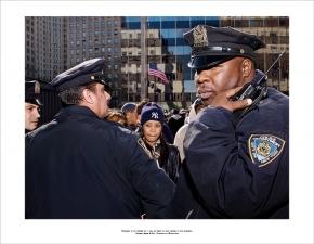Au final, l’attitude des policiers new-yorkais tourne très vite à la farce. Car de façon paradoxale et ironique, ces mêmes policiers réfractaires à l’acte de photo-reportage, n’hésitent pas à poser fièrement à la demande et à côté des touristes, devenant comme par magie d’inoffensifs objets souvenirs épinglés dans un album-photos.