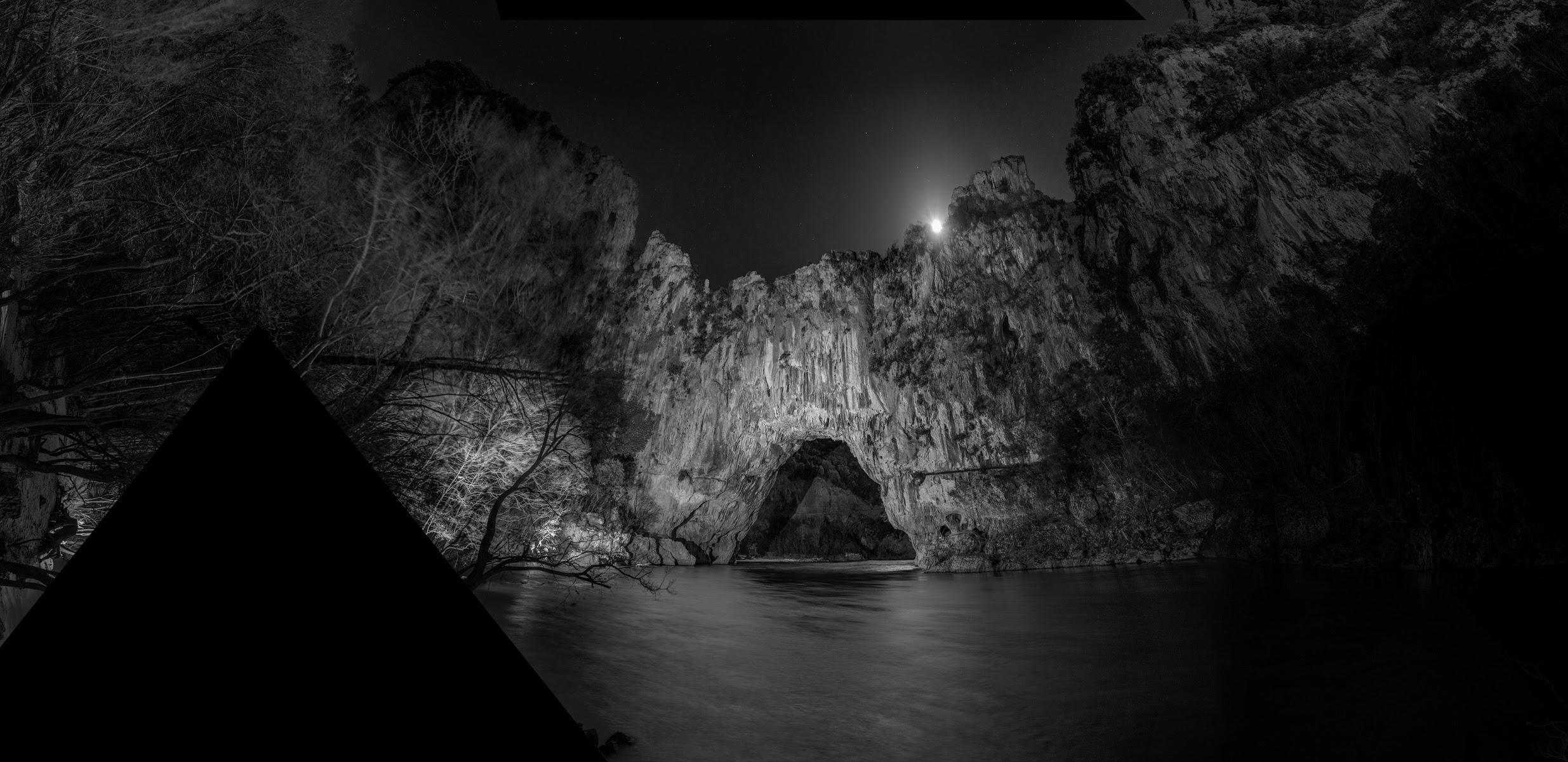 C’est en étant le lauréat d’un concours photographique que l’artiste a le privilège de découvrir cet espace mystérieux. Pour monter ce projet il a alors imaginé un dispositif de prise de vue automatisé permettant de capter les nombreux détails et rendre compte des volumes impressionnants présents dans l’espace confiné. La visite d’une grotte est une expérience sensorielle unique, à la fois sonore, olfactive et visuelle.L’artiste nous immerge alors dans cet univers, on peut alors parler de retranscription d’une expérience totalisante. L’installation au CENTQUATRE-PARIS est immersive, se fait pas à pas, amène au silence, amenant le visiteur à se déchausser et s’installer à même le sol pour être présent au spectacle qui se déroule devant lui.