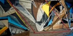 Pour des raisons esthétiques. La plupart du temps, quand ils ont vécu, ils me tapent à l’œil. De la même façon que j’ai toujours préféré les murs décrépis aux murs blancs. … Ils sont en lien avec ma vie, mon histoire, les lieux où je gravite. Généralement, je sais exactement d’où ils viennent, ils sont chargés de sens pour moi. Il y a dans mon travail quelque chose de l’ordre de la déflagration, du chaos. Même si les peintures sont un moyen de figer ce mouvement. Les morceaux de bois arrachés sont signes de violence. Les couleurs très vives, plutôt joyeuses, sont en contraste avec cette violence.