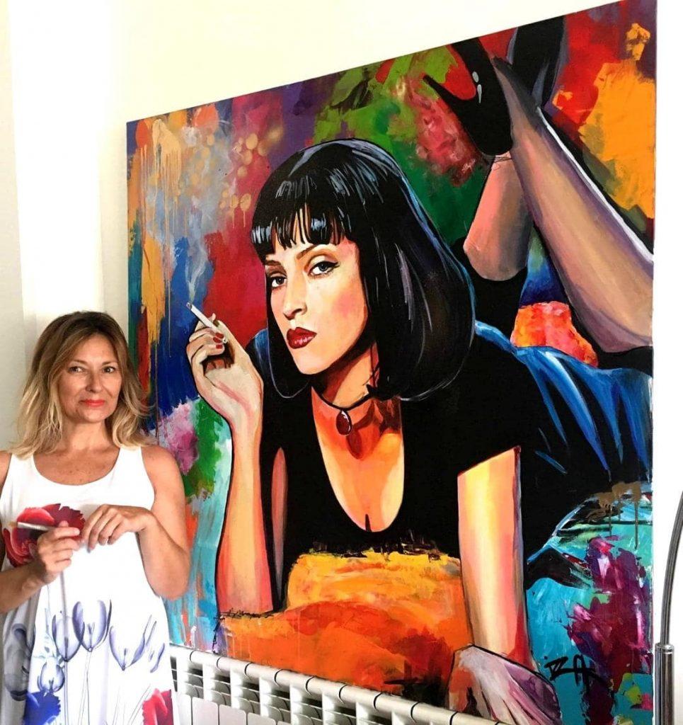 Vous pouvez visiter mon univers artistique et voir mes œuvres sur mon profil Facebook et sur ma page intitulée “Couleurs de swing”. Par ce biais, vous pouvez communiquer directement avec moi et accéder à une galerie en ligne de toutes mes toiles, ainsi qu’à mon actualité. Je précise que je vends mes œuvres, commandes et créations en direct, je communique avec mes clients et procède personnellement aux emballages, expéditions ou livraisons. En outre, des professionnels de l’art m’honorent de leur complicité en France et à l’étranger, en exposant mon travail à travers l’Europe et sur le continent américain. J’ai notamment le plaisir d’avoir pour partenaire durable un galeriste d’exception en la personne de Bruno Hamelin, gérant de la galerie d’art internationale Art 21, nichée au cœur de Montmartre – 27 rue Tholozé, 75018 Paris. Je suis également présente outre-Manche sur l’île de Jersey, à la Harbour Gallery de Saint-Aubin, où Pat Robson expose mes deux styles de prédilection : mes portraits pop art constellés de pigments or ou structurés par de puissantes couleurs complémentaires ainsi que mes bords de mer abstraits aux horizons mystérieux.