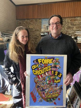 Je suis passionné d’art depuis mon plus jeune âge, j’ai toujours dessiné. Lorsque j’étais adolescent, j’ai donc commencé à me former à l’école des Beaux-Arts à Rennes. Je suis resté 5 ans à l’EESAB, ce qui m’a permis d’évoluer en tant qu’artiste. En 1998, j’ai illustré une dizaine d’affiches de la Foire aux Croûtes qui a lieu à Brest, composées de personnalités brestoises. Cet évènement a pour but de mettre en avant les œuvres des peintres et des artistes brestois. C’est un moment de convivialité et festif. Depuis 2013, j’éprouve un intérêt pour le street art avec la réalisation de mes poules bretonnes. Ces dernières ont été déposées sur des panneaux d’affichage public. Cette année, des étudiants de l’ESB ont décidé de mettre en scène mes poules en réalisant le film Métropoules, dans lequel je suis acteur.