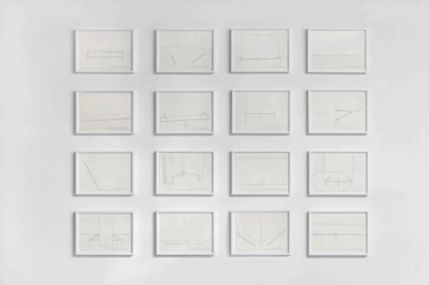 Principe de Précaution est une série de dessins en cours qui inventorie toutes sortes de dispositifs de protection exposés devant les œuvres d’art dans les espaces institutionnels : musées, galeries, foires d’art, etc. Utilisant une esthétique minimale, les dessins ne sont composés que de lignes qui diffèrent en épaisseur lorsqu’ils représentent un volume architectural ou des dispositifs de protection. Les œuvres d’art sont retirées des espaces d’exposition qui deviennent abstraits, remplis de signes disciplinaires.