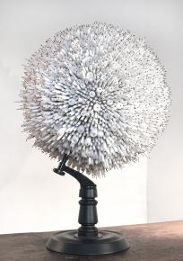 Pour l’évènement, la plasticienne a exposé « Histoire géographique », un globe terrestre recouvert de 5000 bougies, plus ou moins fondues. Métaphore de la relativité, cette œuvre est aussi un rappel à une série de dessins nommée « Saragosse », où les bougies sont souvent présentes. Car ses travaux reposent sur un ensemble, un système. Ils sont tous liés, de façon presque subliminale, par des effets de rebonds et d’échos.