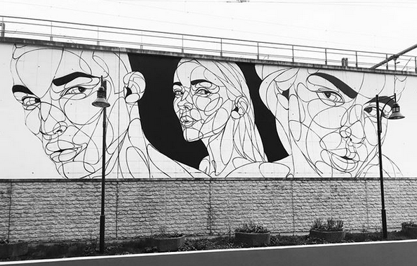Alber décline ses portraits aux couleurs chatoyantes délimitant les traits de ses visages ; son sens de la géométrie et de la couleur apportent de la fraicheur à la discipline. En raison du confinement, l’artiste n’a pas pu colorer sa fresque… un work in progress à suivre !