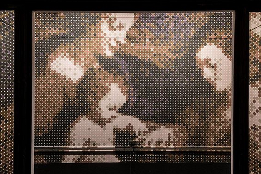 Saato a invité 12 artistes pour une performance dans le métro parisien avec le soutien de la RATP, afin d’habiller les alcôves secrètes de la station de métro Palais Royal, et ainsi la transformer en galerie artistique. Membre du légendaire crew Da Mental Vaporz (Bom.K, Brusk, Dran, Lek, Sowat…) depuis 2000, l’artiste Kan utilise la méthode du pointillisme pour ses fresques.
