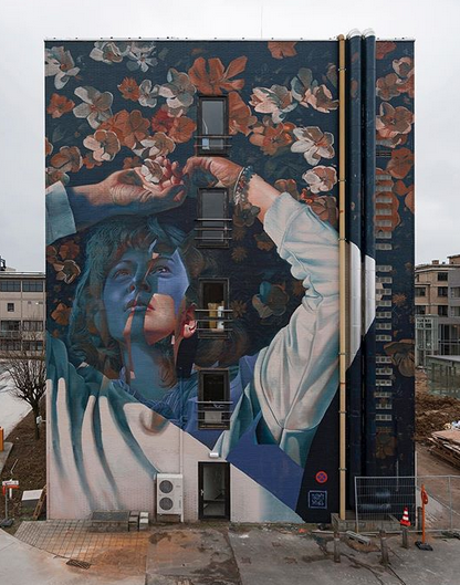 Originaires des Pays-Bas, Telmo Pieper et Miel Krutzmann sont deux artistes réunis depuis 2012 sous le nom de Telmo Miel. Mélange de réalisme et surréalisme, leurs peintures vibrantes sont pleines de détails : leurs fresques monumentales sont d’immenses tableaux de peinture, avec de nombreuses références au monde humain et animal.