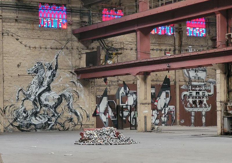 Véritable musée “clandestin”, les usines Babcock et Wilcox abritent depuis fin 2019 des bijoux du street art et du graffiti de plus d’une centaine d’artistes. L’histoire de la création de ce musée débute par la curiosité de trois graffeurs Zkor, Sto et Namaste qui découvrent ce bâtiment abandonné de 4 hectares, en bon état, et surtout avec des murs vierges de plus de 15 mètres de haut ; prêts à être couverts de leur art. Toutes les conditions sont alors réunies afin de leur offrir le meilleur espace de travail à savoir les dimensions, la discrétion, le temps (grâce aux confinements) et le calme. Débute alors cette grande aventure dans laquelle ils embarquent avec eux leurs amis graffeurs et street artistes avec beaucoup d’organisation, de liberté et en même temps de respect de l’espace de l’autre.