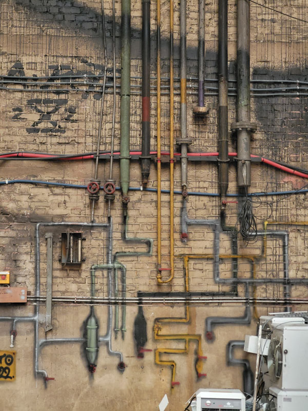éléments déjà présents sur les murs : des tuyaux, des câbles, des tableaux ou encore des objets et des situations ; permettant ainsi un effet de réalisme, de 3D et une expérience visuelle et sensorielle admirable. Même des vitraux sont réalisés, donnant ainsi son nom de “cathédrale” au lieu.
