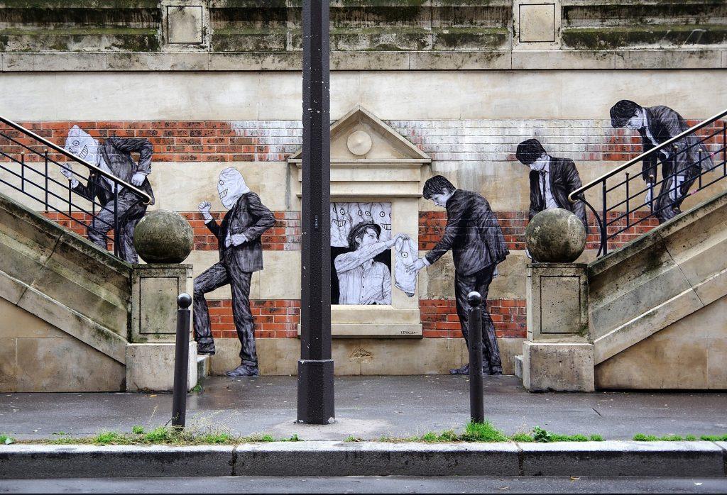 Un peu par hasard et par la force des choses. J’ai fait des études à Strasbourg et je suis arrivé à Paris en 2011, dans une ville que je ne connaissais pas, où j’avais plus de lieux d’expositions, et j’ai beaucoup travaillé le dessin à ce moment-là. Je me suis retrouvé avec des nombreux dessins dont je ne savais pas quoi faire, donc j’ai commencé à les coller dans mon quartier. Ce qui m’intéressait en premier lieu c’était, plus que de travailler avec l’espace public, de travailler avec l’espace réel. J’étais intéressé par le fait de mélanger la figuration, l’espace artistique, et de l’inclure dans l’espace réel, de jouer sur l’interaction entre les deux. Je travaillais déjà sur ça mais plus sur des installations vidéo, avant de le faire dans la rue.