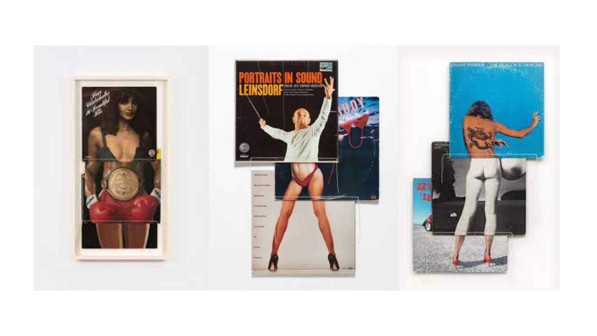 Parmi elle, la série Body Mix, réalisée en 1993. Avec cette série, l’artiste crée de fausses continuités en décidant de coudre entre elles des pochettes de vinyles. Il crée ainsi des corps imaginaires, des chimères, où se mêlent le masculin et le féminin, le vivant et le non-vivant. En assemblant ces pochettes, Christian Marclay fait naître des créatures hybrides, parfois drôles, ironiques et détonantes. À travers cette série, l’artiste émet une critique légèrement acerbe de l’industrie musicale.
