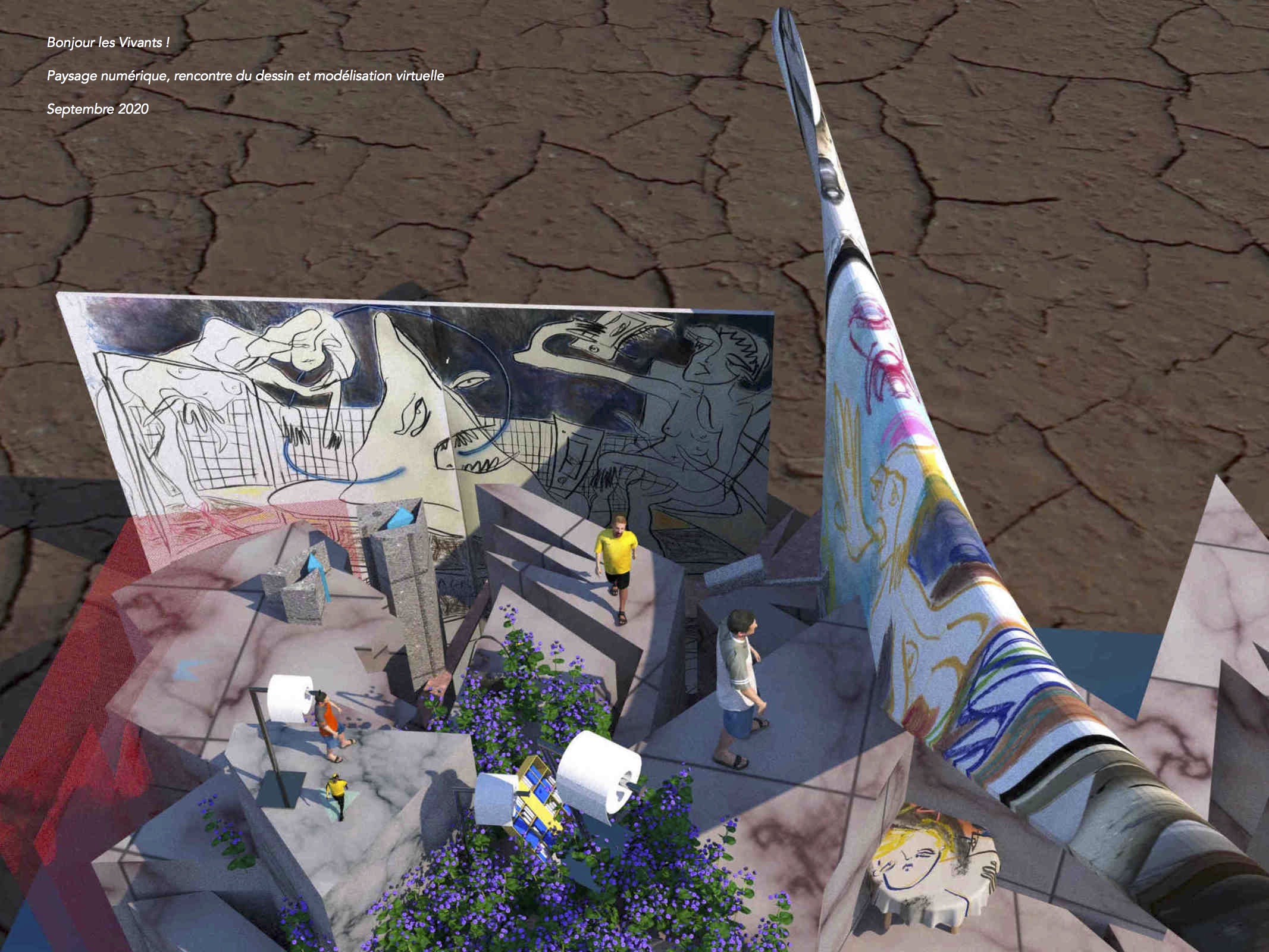 Il y a une œuvre que j’ai réalisée au mois de mars qui a été particulière. C’est une vidéo qui s’appelle Sublime, qui s’est faite sur plusieurs temps. Elle est issue d’un texte que j’ai écrit en 2018, j’ai ensuite demandé à une artiste qui s’appelle Molpé de l’interpréter et de mettre en musique ce texte. Elle a réussi à faire un travail très beau autour de ça. Et à mon tour je l’ai mis en image à partir d’une application sur téléphone qui fait du dessin digital 3D, et il en est ressorti cette vidéo.