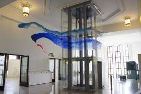 Visuels : Sans Titre (Série Gaulois), 2014, dessins muraux, bande adhésive, bande d’aluminium et acrylique dans l’espace du Beffroi de Montrouge, dimensions variables © Mari Minato photo : Baptiste François / Chêne, Châtaigne, 2012, chaux, eau de chaux, pigment naturel, acrylique sur mur, plafond et poutre de la chapelle, dimensions variables © Stéphane Cuisset |