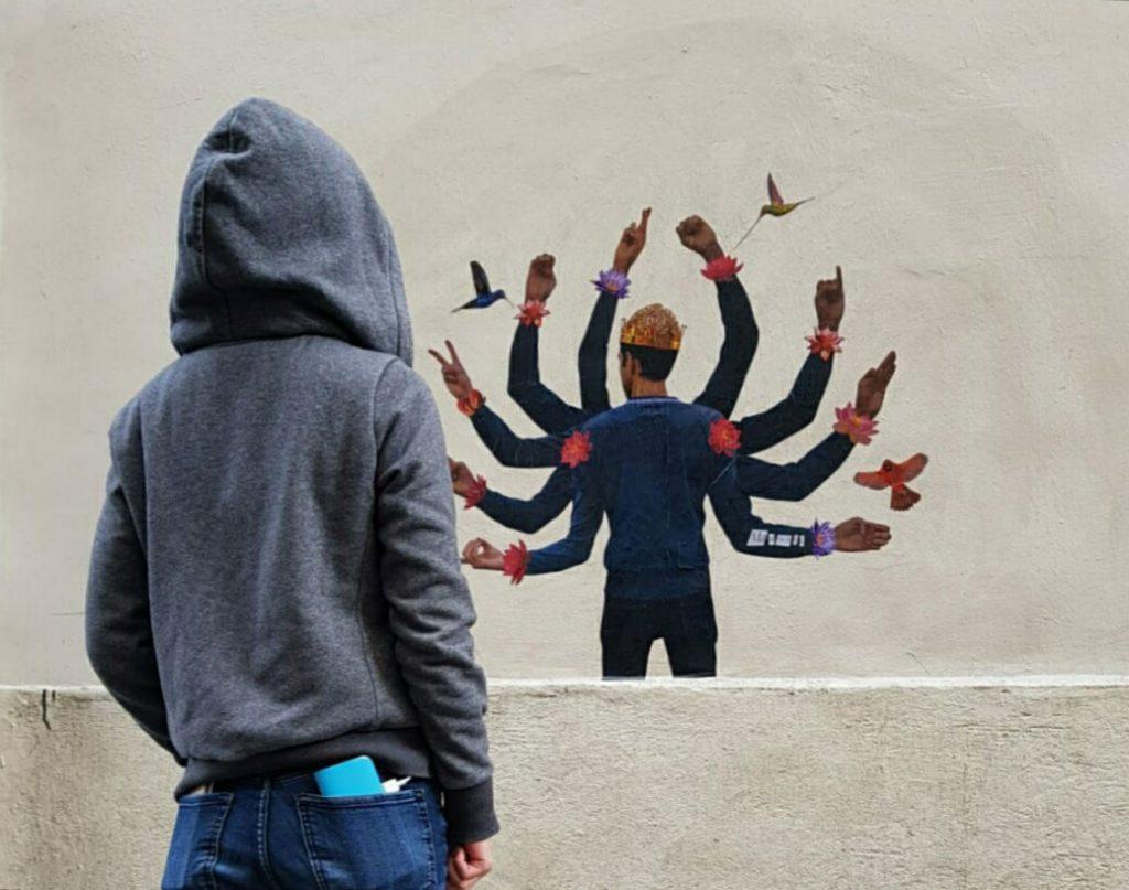 Avec le street art on est vraiment libre de s’exprimer comme on le veut, donc autant essayer de véhiculer des messages qui nous sont chers. Dans mon cas, mes personnages sont le résultat d’individus que je prends en photo, que j’ai essayé de sublimer et à qui j’ai envie de dire : “Tu t’inscris dans ce tout, tu es beau ou belle comme tu es”.