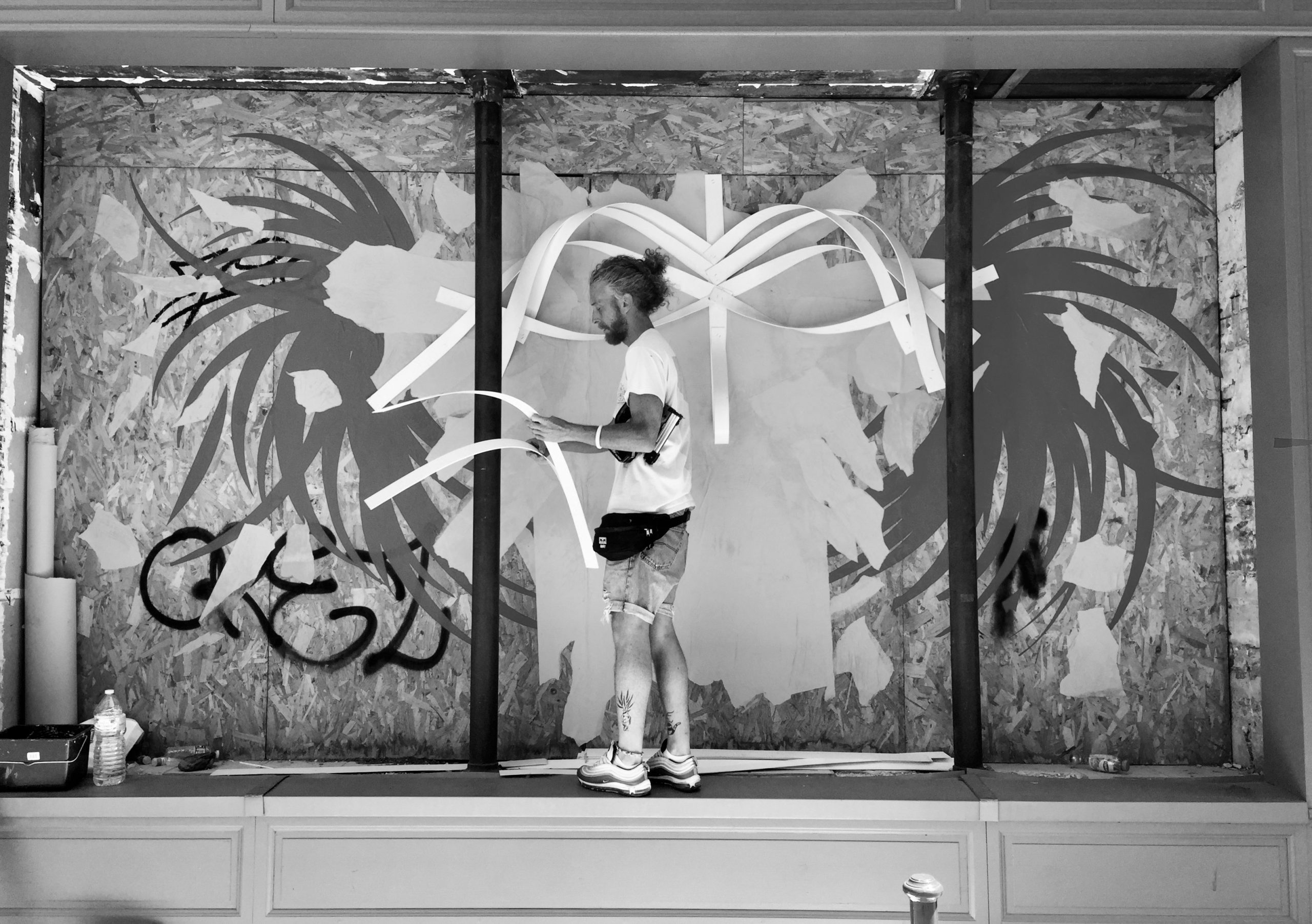 Pour moi, le 9ème Concept a été comme une seconde école. Tu es forcément influencé par les membres du collectif. Ned (ndlr : l’un des co-fondateurs du 9ème Concept) a un rôle de conseil important : il t’oriente sur ton travail. À l’époque, je travaillais le thème des animaux et des masques avec des bandes qui s’entrelacent.