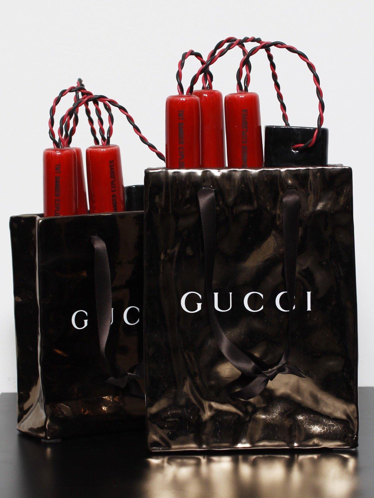 Réciproquement, les artistes s’inspirent également des marques de mode et de luxe dans leur travail, le plus souvent en mode transgressif. Antoine Bouillot, ancien directeur artistique pour plusieurs maisons, s’empare des marques et les met en scène de façon désacralisée pour nous amener à réfléchir sur notre rapport avec elles. Dans Opposites belong together, œuvre de 2009, c’est un shopping bag Gucci qui est quasi dynamité par l’artiste (cf photo en une). L’artiste urbain Zevs quant à lui, “liquide” les logos de marques comme Louis Vuitton, Chanel, Nike, Supreme ou Lacoste depuis 2006. Louis Vuitton n’a pas manqué par la suite de sauter sur l’occasion artistique pour intégrer son logo liquidé par Zevs dans une de ses collections.