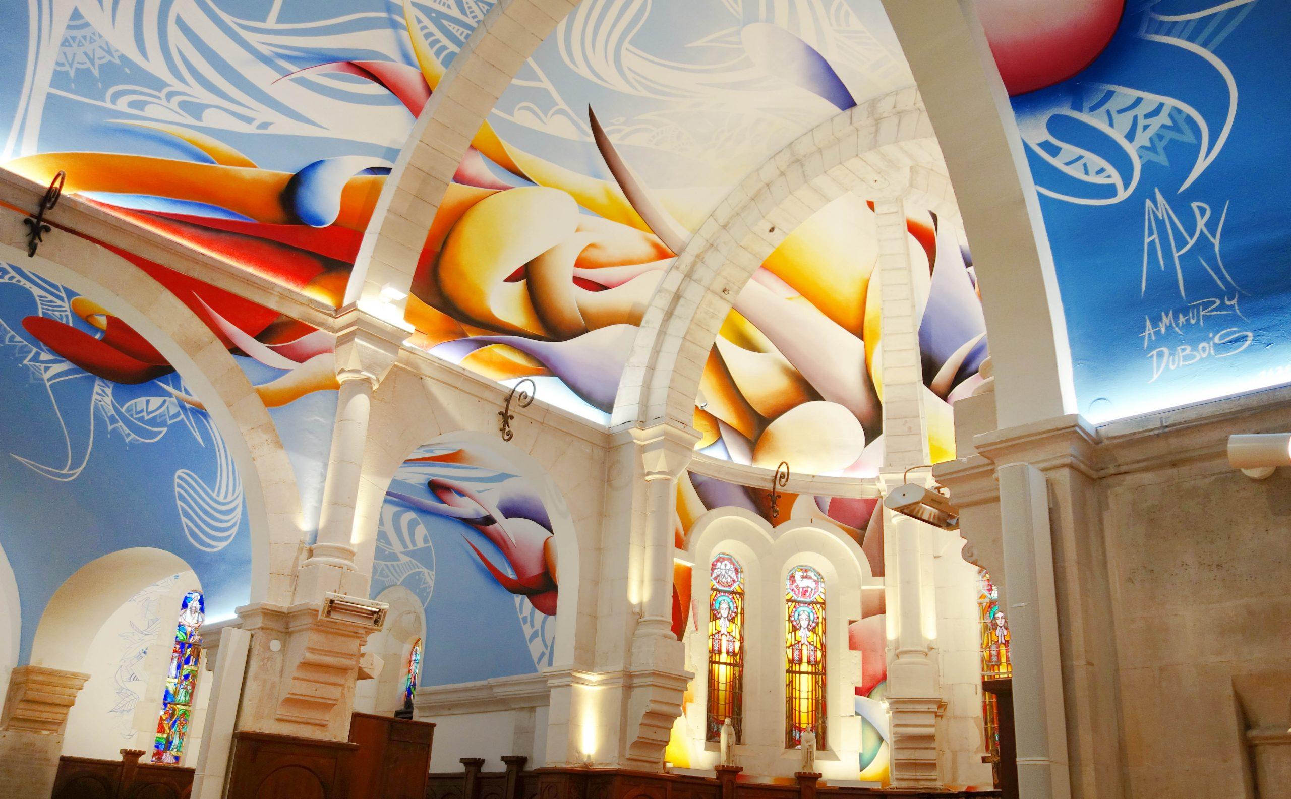 En mars, juste avant le confinement, Amaury Dubois a transformé la voûte de l’église Sainte-Madeleine de Châtelaillon-Plage en une fresque street art de 600 m² : c’est l’une des plus grandes qui existe en France. Nous n’avons toutefois pas pu l’annoncer alors à cause de la crise sanitaire, c’est pourquoi nous n’avons communiqué dessus que récemment. Le projet est de continuer à faire connaître cette œuvre unique en son genre, autant en France qu’à l’international.