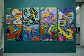 Pour moi, c’était un devoir. A l’époque, je travaillais avec un groupe qui s’appelait les M.A.C pour faire d’énormes fresques. Je trouvais stupide qu’il y ait tant de superbes fresques dans des terrains vagues que personne ne pouvait voir – il fallait donner des murs dans la ville. Gallizia, au départ, avait flashé sur un gars qui écrivait Amour, qui n’était pas graffeur mais lui a présenté Popay, puis moi et Jonone. Et Gallizia s’est passionné pour le mouvement. On lui a fait découvrir les anciens. Il a décidé de faire une grosse collection. J’ai fait plusieurs voyages aux Etats-Unis pour lui, je lui ai ramené des toiles, et ça m’a permis de rencontrer les gars qui m’ont fait grandir ! Je trouvais intéressant de faire un instantané sur une culture en train de disparaître, de voir ces anciens. Sa collection est très complète, parce qu’ila vraiment un panel international. Ceci dit, c’est vrai, il a fait beaucoup d’erreurs, il se trompe souvent… Quand il a organisé l’exposition au Grand Palais autour du mot « Love », je trouvais que c’était une mauvaise idée de donner une thématique aux graffeurs. Mais finalement, on l’a fait. Même si certains disent que le Grand Palais a tué la culture du métro, je pense que cela a fait voir le graffiti différemment à un public beaucoup plus large.