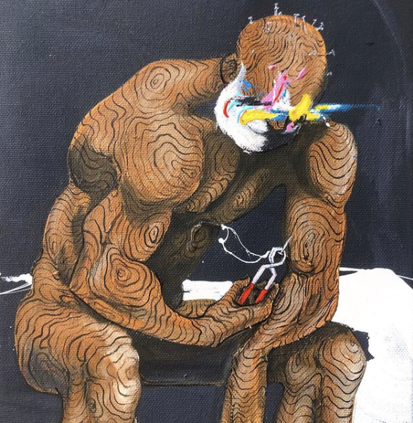 Sur beaucoup de tes personnages, la peau ressemble à du bois. Pourquoi avoir choisi cette matière ? Qui sont les personnages que tu peins ?
