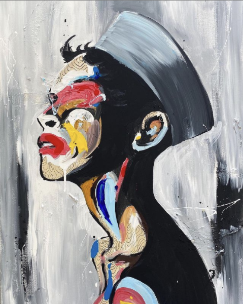 Les yeux me paraissent trop évidents car ils peuvent être symbole de sagesse, de sincérité et d’amour mais peuvent aussi être faussés. Si dans une toile nous rayons les yeux du sujet, le spectateur sera obnubilé par eux. En cachant les yeux, nous ne nous concentrons pas sur le superficiel mais sur l’âme. Je veux amener le spectateur à se questionner sur la relation qu’il entretient avec les autres. Est-ce que lorsque je regarde une personne, je me focalise sur son regard et ce qu’elle veut me montrer ou est-ce que je la vois telle qu’elle est réellement ?