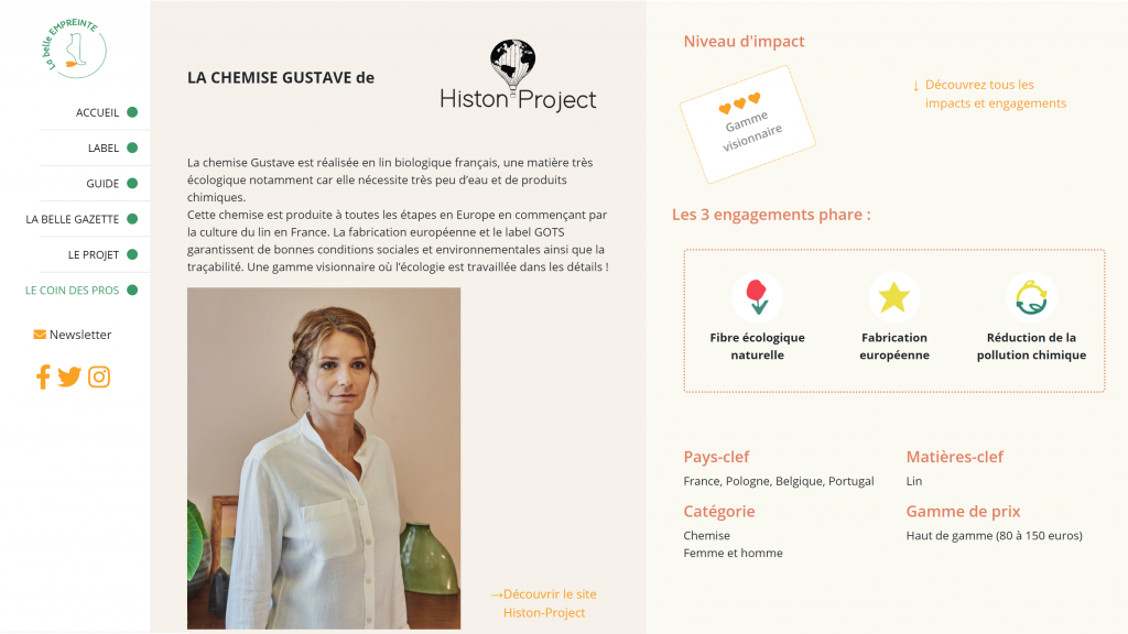 Il s’adresse à un public large, nous y avons glissé des mémentos simples comme « 5 gestes simples à mettre en place pour s’habiller de façon responsable » et avons été interviewer des acteurs de ce milieu en y incluant également des contenus un peu plus fourni pour les personnes déjà convaincues pour qu’elles puissent trouver de nouvelles informations.
