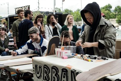 Je gère une équipe de rédacteurs bénévoles, chacun est libre de son sujet, on a d’ailleurs plusieurs rubriques. La rubrique “Actualités“ où les rédacteurs peuvent présenter une exposition, faire une critique. La rubrique “Rencontres” où ce sont plus les interviews, la rubrique “Lieux”, les lieux typiques de l’art urbain, les institutions et autres, et ensuite on a une rubrique “Séries graffiti” que j’ai créé il y a deux ans où l’on essaie de raconter l’actualité en série. On a également une rubrique orientée plus culture urbaine que j’ai également créé il y a deux ans, elle se nomme “L’écho urbain”, on y parle de musique, de danse, de sport. Enfin on a la rubrique “Dossiers”, plus orientée articles thématiques, analytiques, où l’on va par exemple analyser un phénomène, un style particulier, voir même quelque chose de plus philosophique. Je vais aussi relire les articles, orienter les rédacteurs sur le format par exemple. Je travaille également sur la communication de l’association, avec d’autres membres de l’asso : on poste sur Instagram, on relaie les artistes sur Facebook… Ce sont mes missions principales en tant que rédac’cheffe, mais à côté on est aussi très libres dans le bureau de proposer des projets. J’ai initié un projet l’année dernière, en lien avec le longboard dancing, un événement en collaboration avec l’asso Docksession. On a organisé un premier événement dans l’espace public sur les quais où il y avait des démonstrations de longboard et des live paintings sur longboards des artistes Bouda, Kelkin et Oji, on a poursuivi ce projet en faisant une exposition pour présenter les longboards peints et le travail des trois artistes urbains. Enfin, tout récemment, j’ai lancé le projet des podcasts (jetez-y un coup d’œil ici).