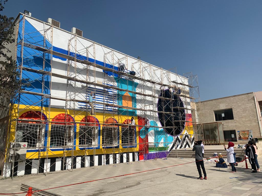 Quatorze étudiants des Beaux Arts se sont appropriés le mur de 200 m2 en co-réalisation avec l’artiste Zdey. Des symboles irakiens ont été peints avec une citation « demain sera plus beau qu’hier », message d’espoir, de confiance et de renouveau. L’inauguration de la fresque a été rythmée par des discours de remerciements chaleureux, simples et sincères, de la part du président de l’université, des organisateurs et de l’équipe Artivista. De nombreux journalistes étaient également présents pour couvrir l’événement, enthousiasmés par ce beau projet.