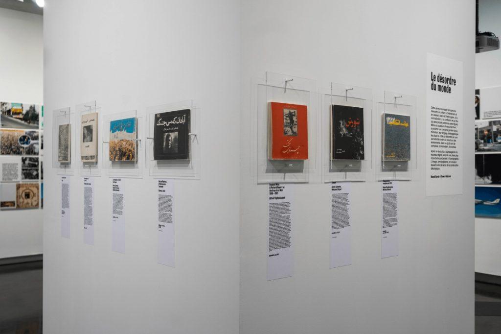 Le choix du titre, Rue Enghelab, qui signifie « Révolution » en perse, revêt une dimension historique puisqu’il renvoie à la rue de Téhéran, où se concentrent des librairies et des maisons d’édition. Les ouvrages et photographies jalonnent le parcours de l’exposition et mettent en exergue une période où le livre était l’acteur principal de la scène sociale et politique.
