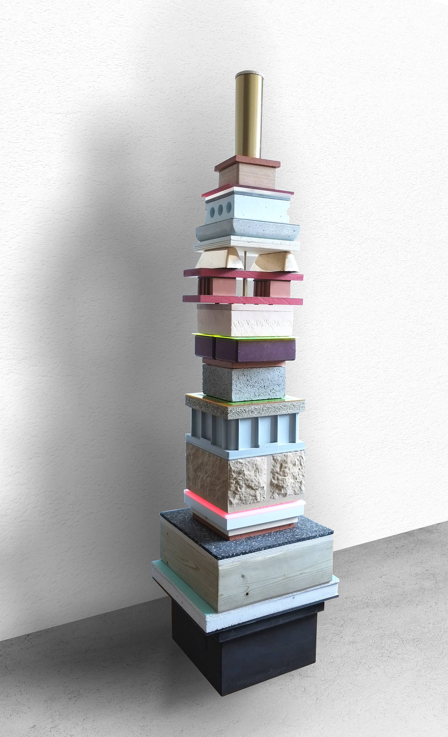 “SH51(lui)”, 2021 Bronze, bois, plâtre, fibrociment, aluminium, LED, PVC, plexiglass, béton, pierre, terre cuite 45 x 50 x 200